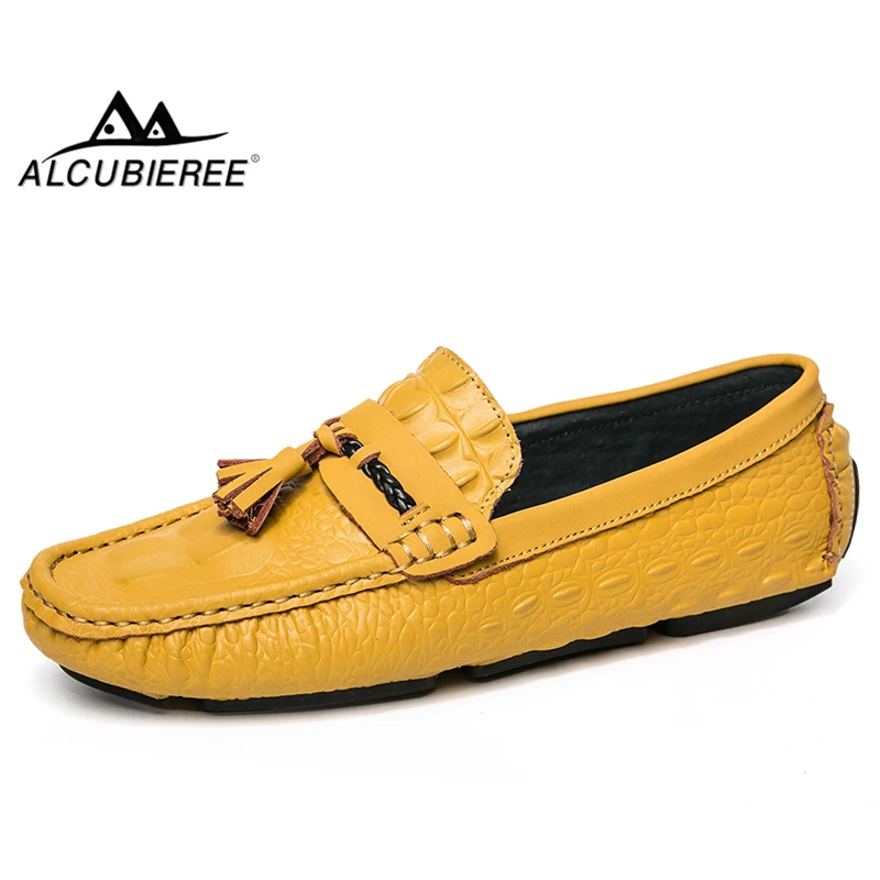 .Images of ALCUBIEREE Fashion Mens Tassel Loafers Men Split Leather Loafer Casual Shoes Man Moccasin Driving Shoes Slip On Flat Boat Shoes
