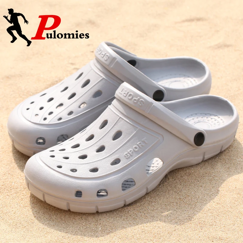 .Pictures for PULOMIES Summer Men Women Slippers Lovers Clogs Outdoor Garden Shoes Male Pool Sandals Bathroom Flip Flops Mules Beach Slippers
